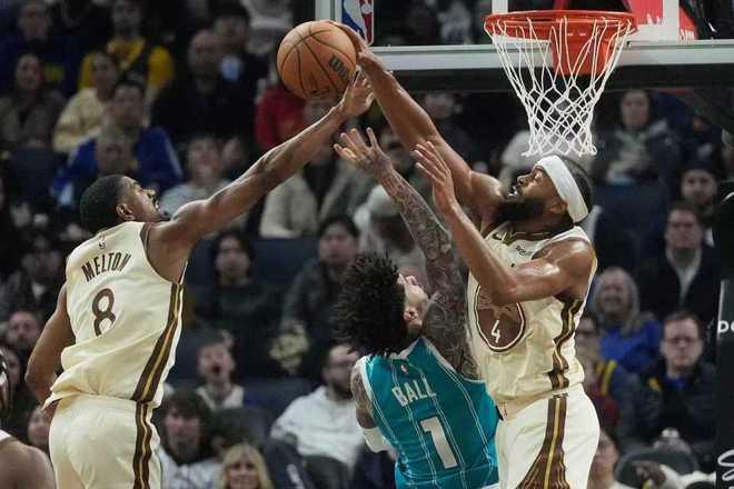 勇士:梅尔顿24分6板3助、追梦20分3板6助、波杰姆斯基16分6板7助2断、库里14分3板5助、希尔德14分3板1助2断3帽、穆迪12分、理查德11分6板5助3断、霍福德11分。黄蜂:米勒28分6板5助、克尼佩尔24分11板2助2帽、塞克斯顿17分3板3助、三球15分4板2助、布里奇斯9分4板2助。